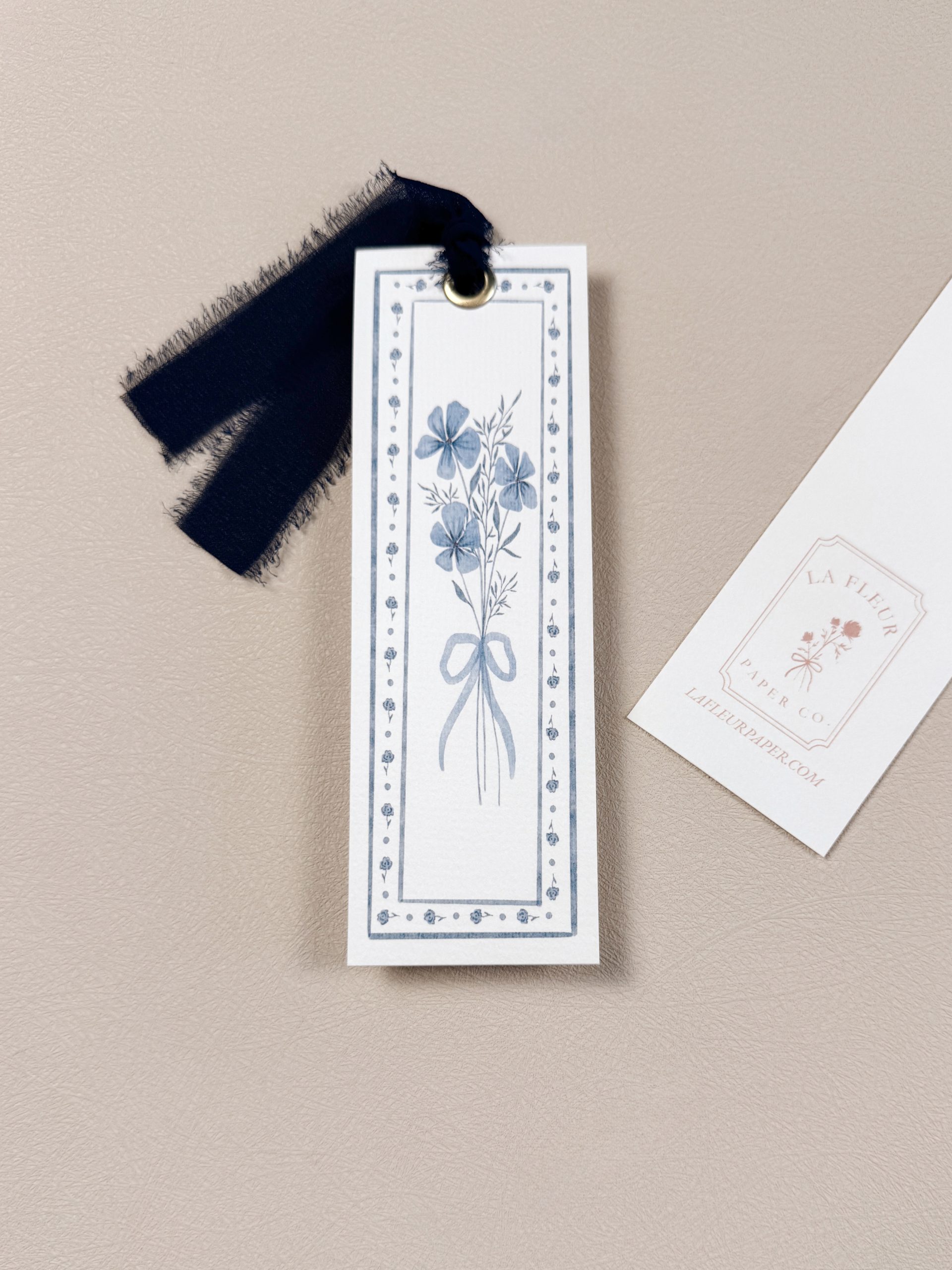 Printed on luxurious fine art paper with a softly textured surface, each bookmark carries a graceful, heirloom quality. Every hand-drawn design is digitized and printed in-house by La Fleur Paper Company to preserve its delicate details. Finished with a hand-tied blush pink silk ribbon secured by a gold grommet, it is a timeless companion for your most treasured reads.