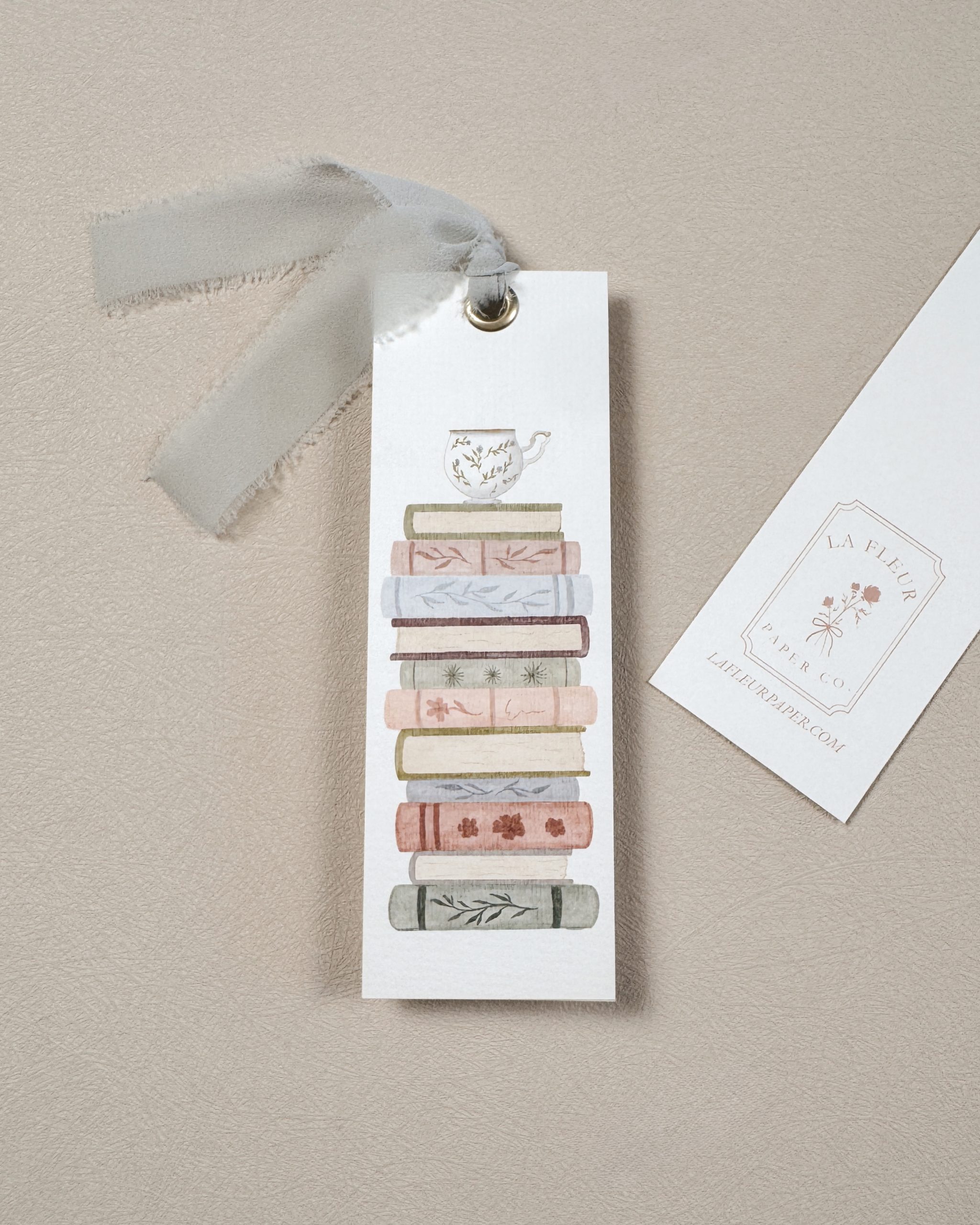 Printed on luxurious fine art paper with a softly textured surface, each bookmark carries a graceful, heirloom quality. Every hand-drawn design is digitized and printed in-house by La Fleur Paper Company to preserve its delicate details. Finished with a hand-tied blush pink silk ribbon secured by a gold grommet, it is a timeless companion for your most treasured reads.