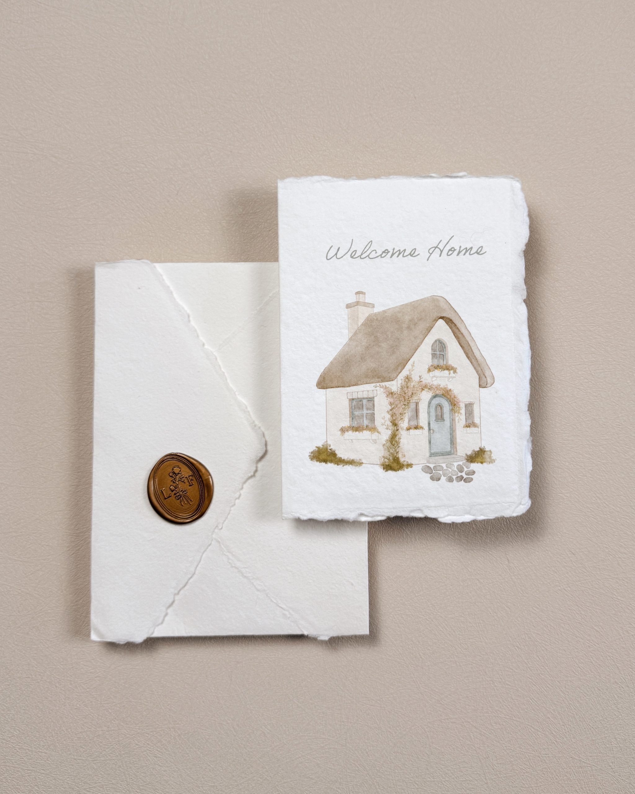 Printed on white, handmade cotton paper with softly torn deckled edges, this card offers a graceful, heirloom-quality finish. All illustrations are digitally printed in-house to preserve every fine line and delicate detail. It is paired with a matching white handmade cotton envelope featuring a refined euro flap and finished with our signature gold wax seal adhesive, each one handmade on-site. Created with care from start to finish, this card is a keepsake meant to be treasured.