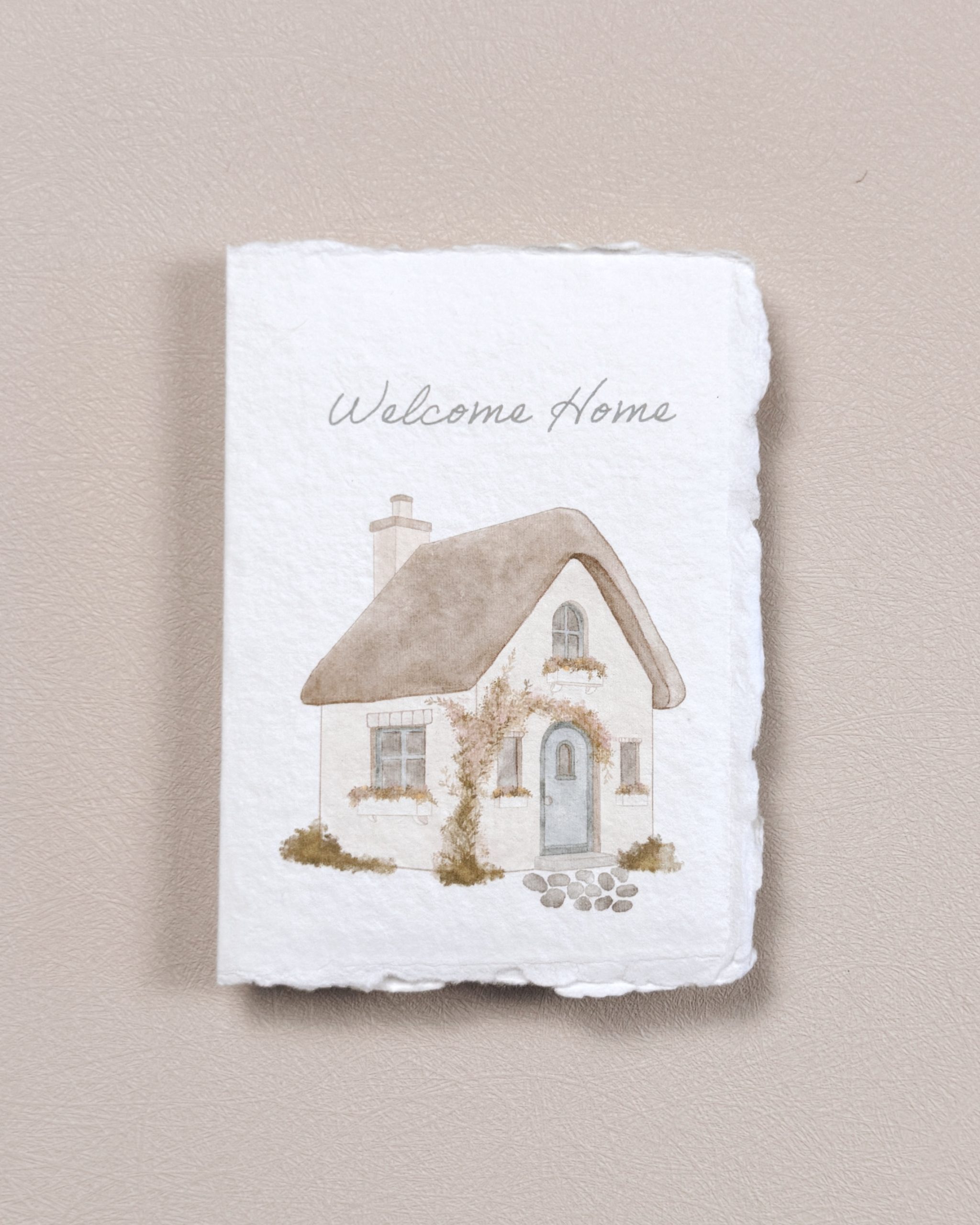 This design features a cozy cottage surrounded by soft pastel florals, evoking the comfort of home and the joy of a warm welcome. Thoughtfully left uninscribed within, it invites your own heartfelt words, allowing the message to be truly personal and unique.