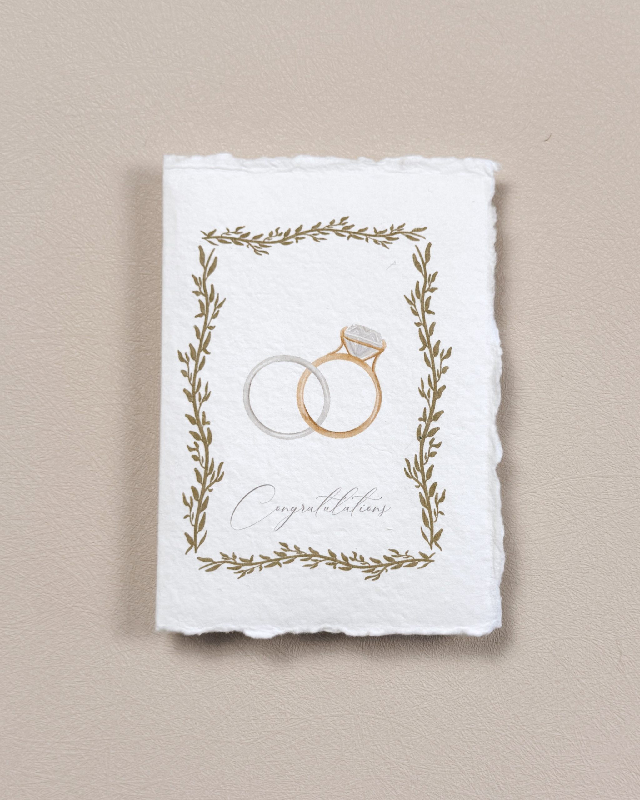 This card features two intertwining rings embraced by a soft sage green border, a delicate celebration of love, devotion, and the promise of a shared future. Thoughtfully left uninscribed within, it invites your own heartfelt words, allowing the message to be truly personal and unique.