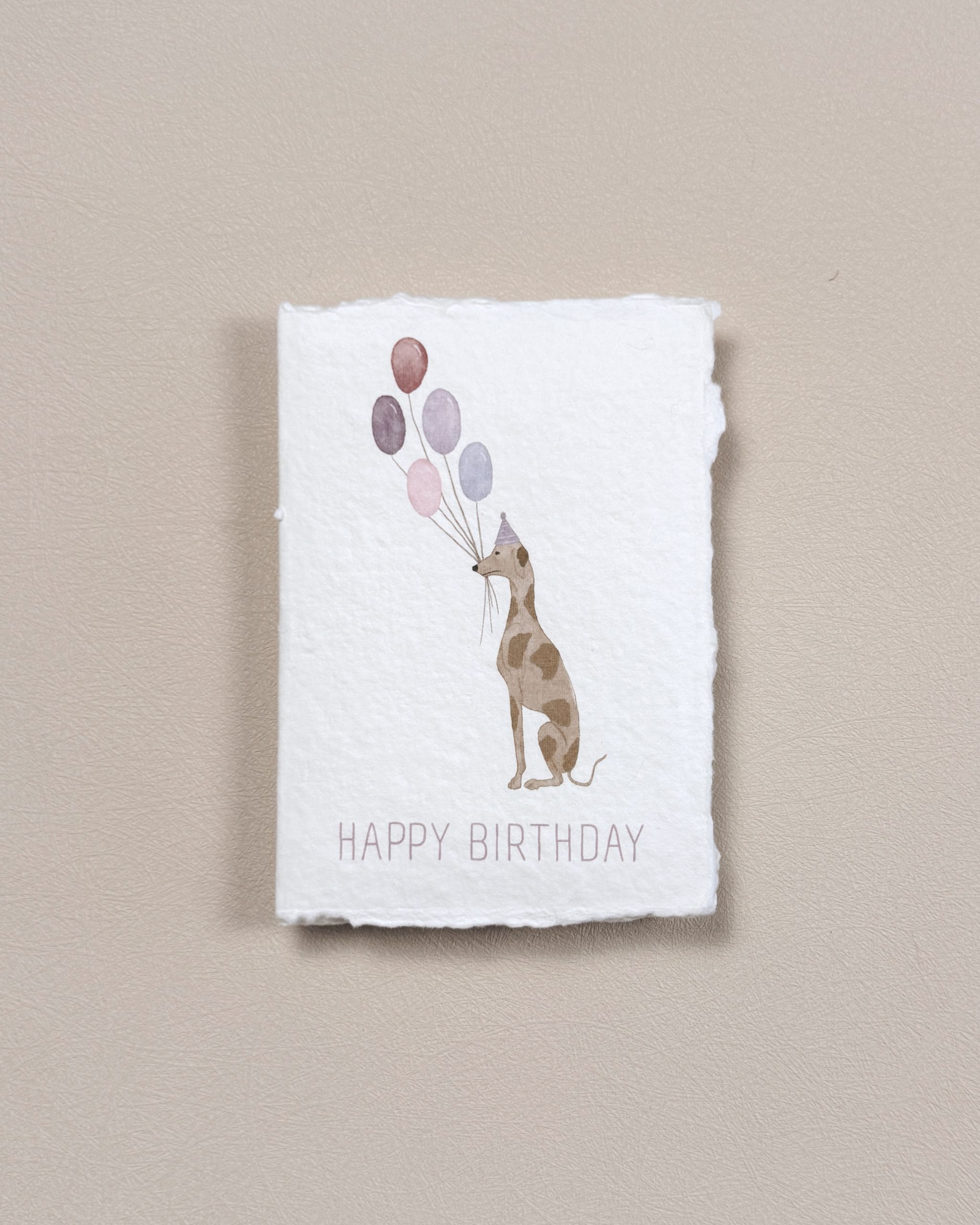 This design features a cheerful spotted hound, party hat perched and balloons in tow, ready to bring a smile to the celebration. Available in soft blue or lavender purple, it adds a touch of whimsy to the joy of the day. Thoughtfully left uninscribed within, it invites your own heartfelt words, allowing the message to be truly personal and unique.