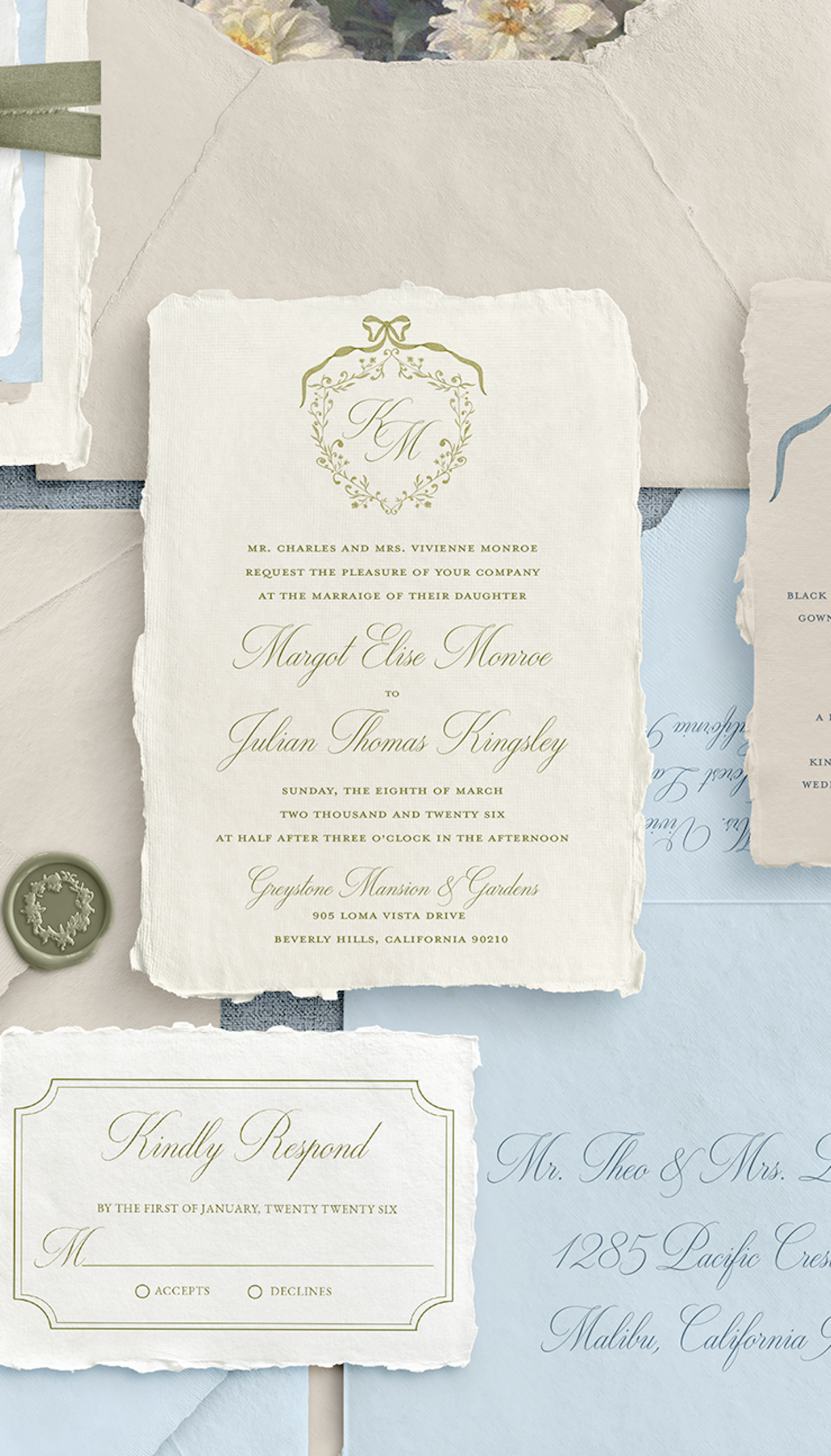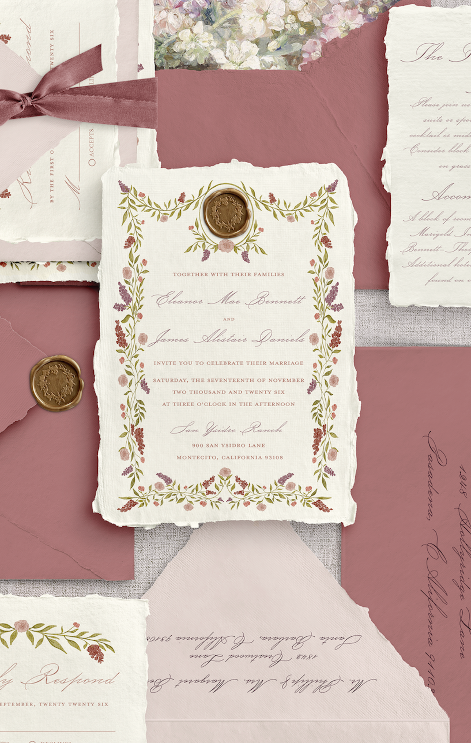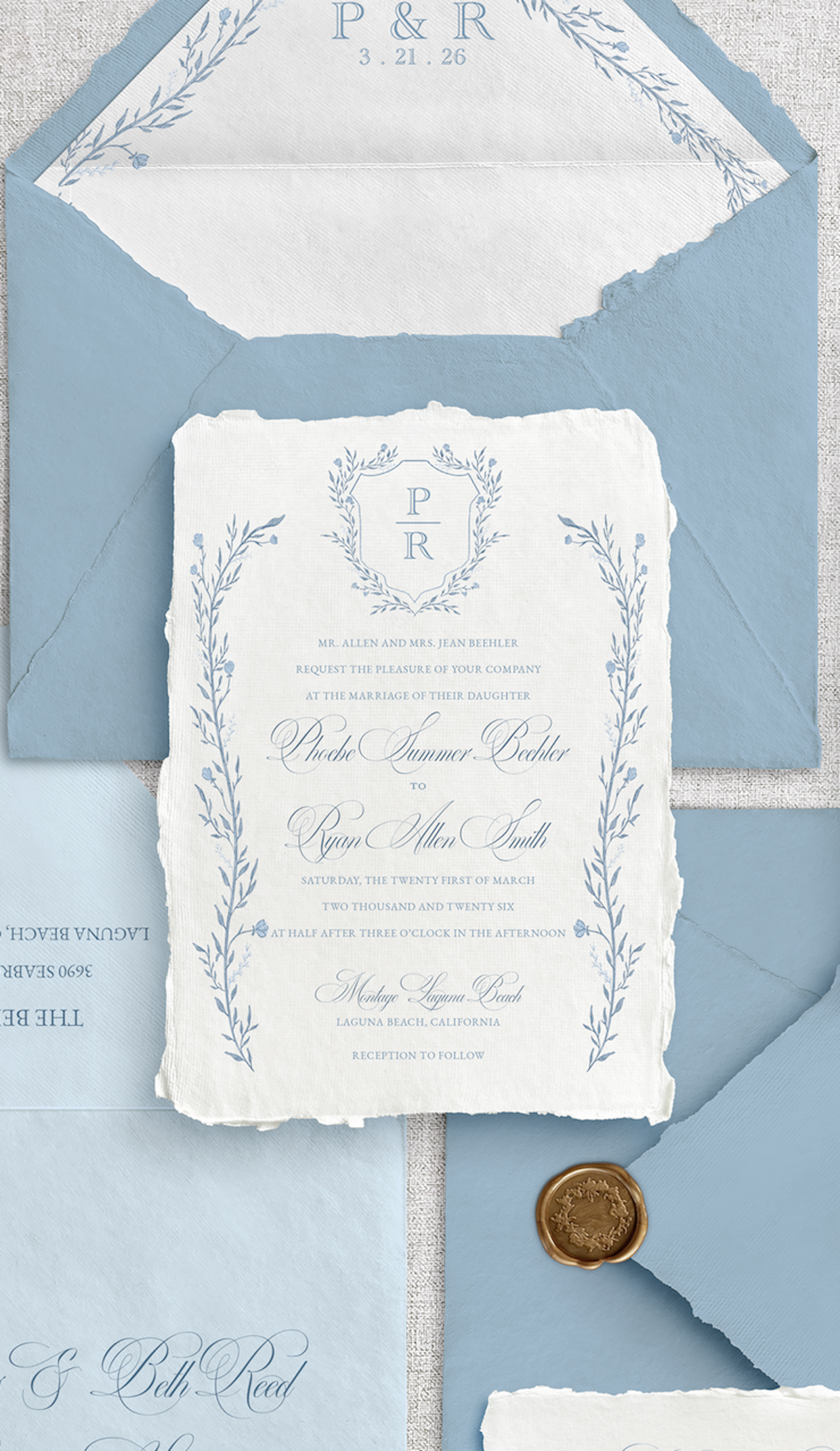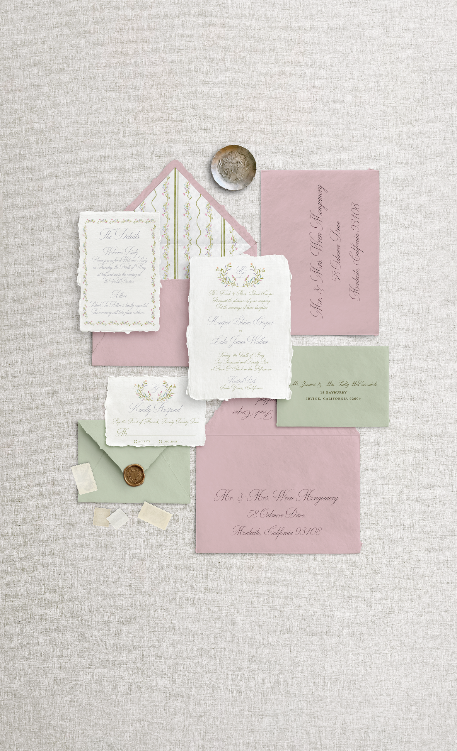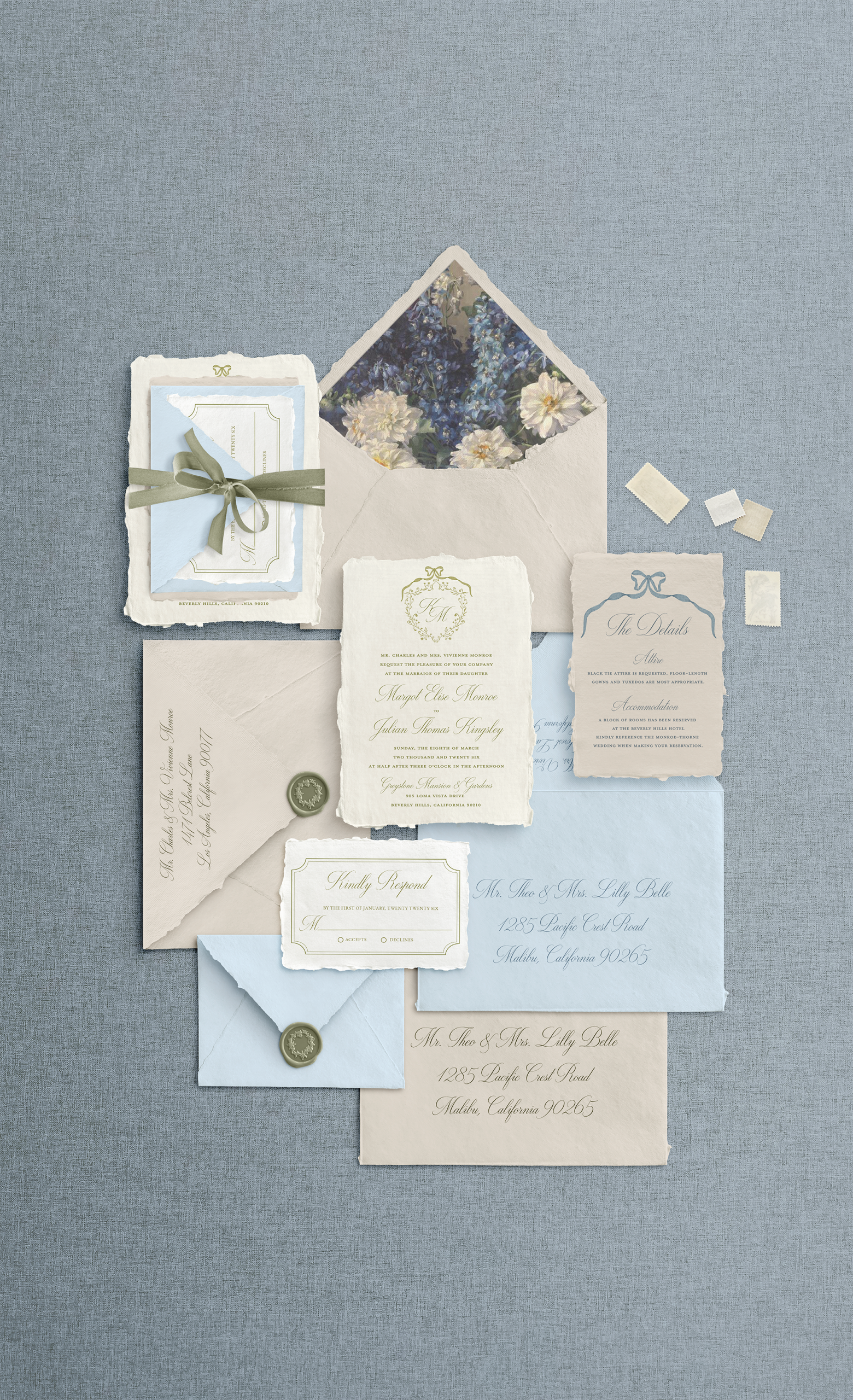 Add the details that make your suite uniquely yours. From ribbons to wax seals, vellum wraps, or other embellishments, these final touches bring depth, texture, and personality to your collection.